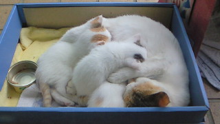こんな親子4匹に癒されてます。